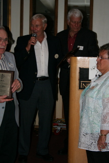 Among the awards presented by the club is the ARL Presidential Award. The award is presented to an individual who has made exemplary contributions to auto racing through hard work and dedication to the sport. Last year’s recipient of this award, Legend driver, Dave Marcis presented the ARL Presidential Award to NASCAR Legend, Junie Donlavy. This year Bill Wimble, Kenny Brightbill, Vicki Wood, Tim Sullivan and George Compton were honored with the ARL Lifetime Achievement Award. Frankie Schnieder, Lew Boyd, Dick Fleck, Wyman “Cookie” Osterhout and Dot Gladis make the presentations.